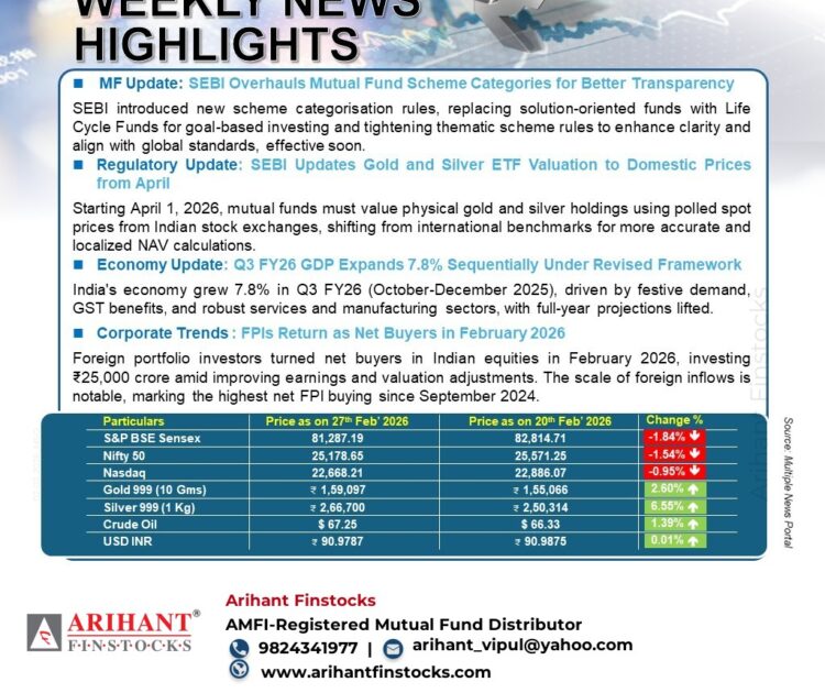 21st February 2026 WEEKLY NEWS HIGHLIGHTS MF Update: SEBI Notifies Revamped Mutual Funds Regulations Effective April 2026 SEBI’s new...
